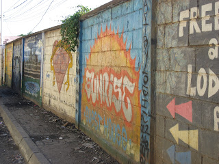 murals for guesthouses along the wall of the backpacker ghetto where we stayed